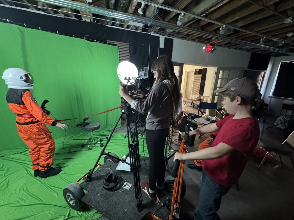 Lights, camera, ACTION! Students get training in various crew roles, and begin filming their movies. Actors will get into character and learn the craft of film acting. Behind the scenes, you’ll direct your teams and manage real on-set operations, learn the art of cinematography, lighting setups, and sound recording. We will be filming at the studio using equipment like green screens and motion capture technology. Productions will be scheduled in the studio, and locations around Prescott.